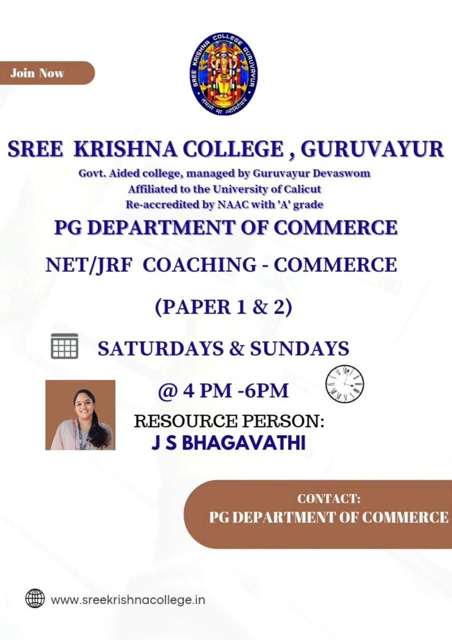 The UGC NET coaching was provided free of cost to the students of the department as well as to the students of different colleges who require an additional coaching for NET exam. The classes were conducted online on ...