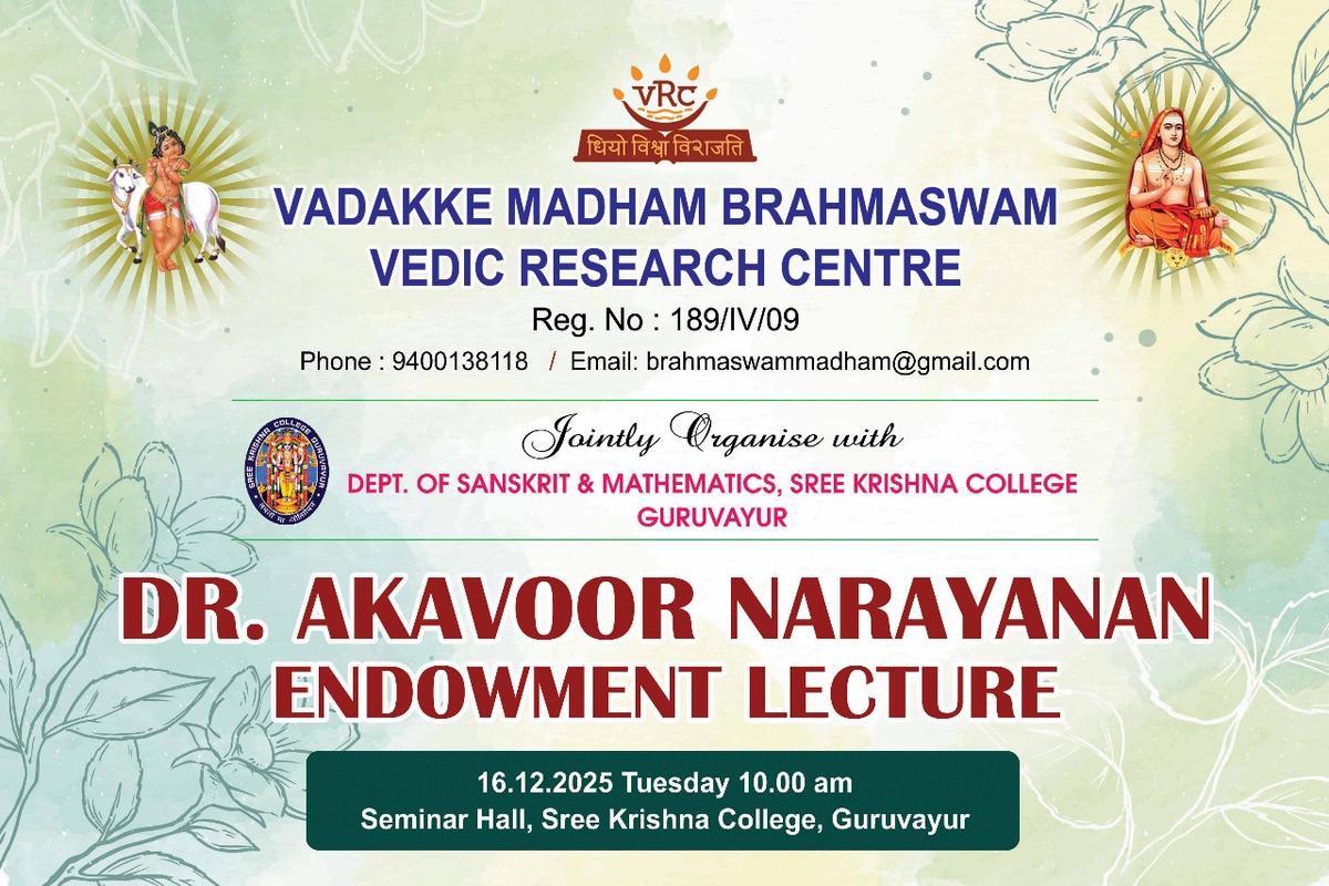 Department of Sanskrit conducted a Seminar in collaboation with VADAKKE MADHAM BRAHMASWAM VEDIC RESEARCH CENTRE, and Department of Mathematics as part of AKAVOOR NARAVANAN ENDOWMENT LECTURE on December 16 2025. The ...